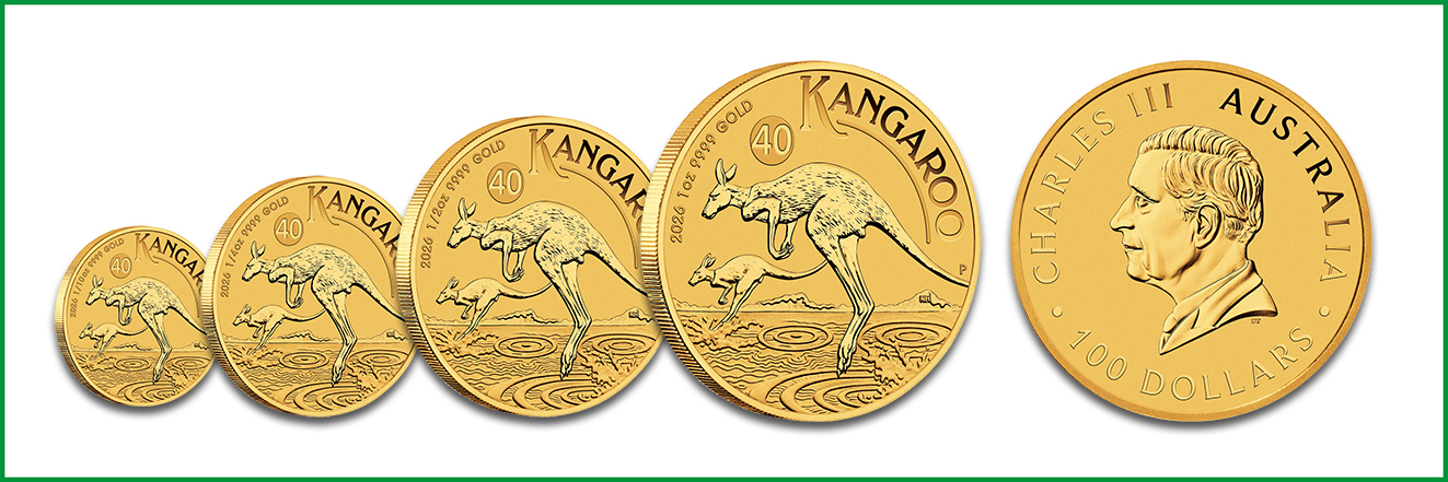 | Australian Kangaroo 2026 | Gold 1/10 oz | Gold 1/4 oz | Gold 1/2 oz | Gold 1 oz |