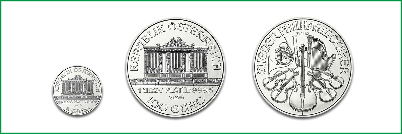 | Wiener Philharmoniker 2026 | Platin 1/25 oz | Platin 1 oz | Silber 1 oz |