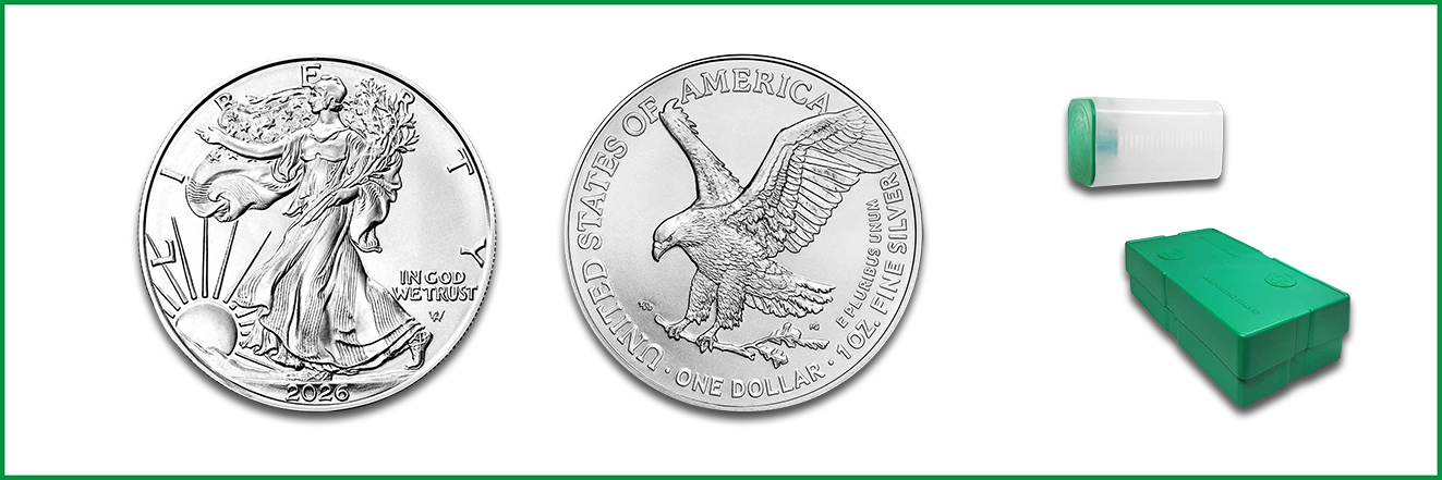 Darüber hinaus erscheint ebenfalls eine Silbermünze American Eagle zu einer Unze mit abweichenden Motiven auf Bild- und Wertseite. Seit 2021 wird auf dem Avers ein Weißkopfseeadler mit ausgebreiteten Schwingen abgebildet. Das Reversmotiv stellt die Walking Liberty dar. Der Silber-Eagle in Bullionqualität mit Nennwert 1 USD besitzt die Maße 40,6 x 2,98 Millimeter. Der Feingehalt beträgt 999 Tausendstel. Verfügbar sind die Münzen wahlweise einzeln, in der Münztube oder in der Masterbox mit 500 Münzen.