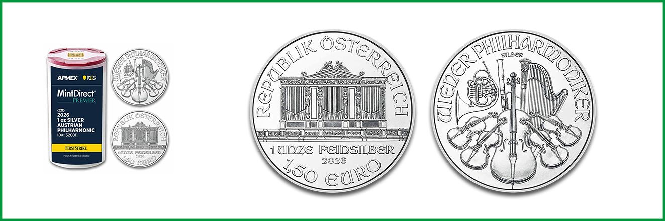 Wiener Philharmoniker 2026 in Gold, Silber und Platin