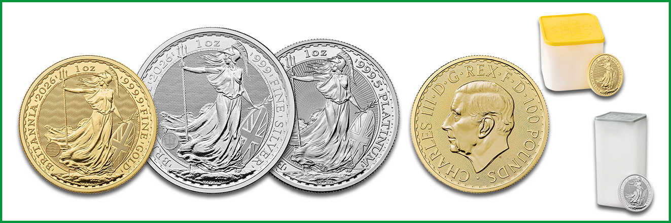 Bullionmünze Britannia 2026 in drei Edelmetallen
