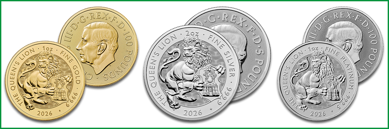 | Royal Tudor Beasts 2026 | Gold 1/4 oz | Gold 1 oz | Platin 1 oz | Silber 2 oz | Silber 10 oz |