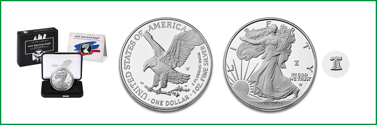 Um den 20. Januar 2026 veröffentlicht die US-Mint eine spezielle Sammleredition der beliebten Bullionmünze American Eagle. Es handelt sich um eine Silbermünze zu einer Unze auf polierter Platte. Dabei wird das klassische Design des Silberadlers mit dem Weißkopfseeadler und der schreitenden Liberty übernommen. Gleichzeitig zelebriert die Gestaltung das 250-jährige Jubiläum der Vereinigten Staaten von Amerika und dessen Gründung durch die Unabhängigkeitserklärung 1776. So weist die Vorderseite die Jahreszahlen 1776-2026 auf und integriert die Zahl 250 in einer Mikrogravur.