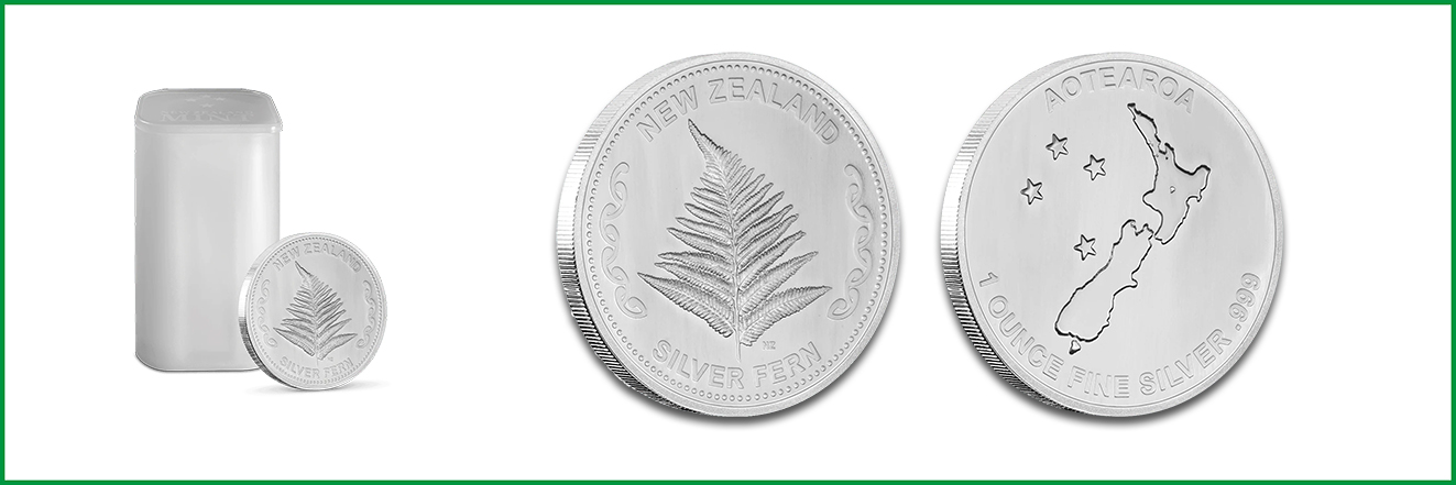 Ebenfalls ohne Nennwert verausgabt die New Zealand Mint die Silbermünze »Silver Fern«. Sie erscheint gleichermaßen in Gedenken an die indigene Bevölkerung der Māori. Der silberne Farn auf der Rückseite verkörpert Tradition und Stärke. Er ist eingerahmt von Māori-Motiven und steht für das Wachstum und die Widerstandsfähigkeit ihrer Kultur. Die Vorderseite stellt die beiden Hauptinseln von “Aotearoa”-Neuseeland sowie das Sternbild Kreuz des Südens dar.