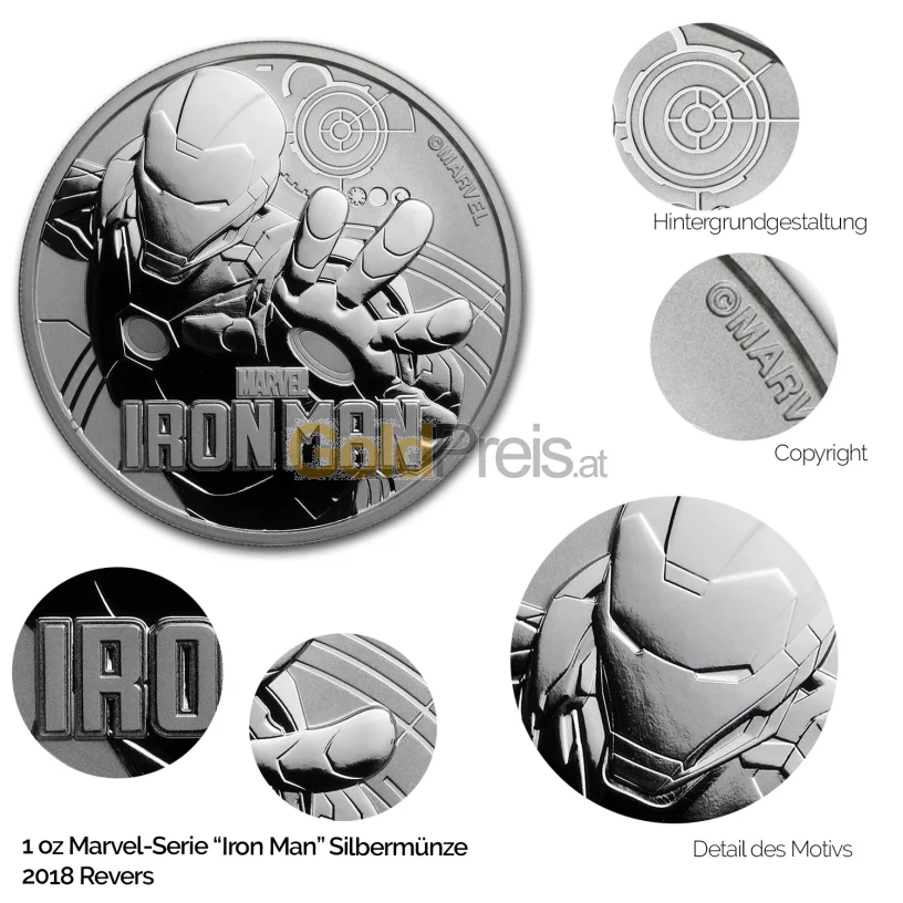 Im ikonenhaften Comic Book-Design präsentieren sich die Silbermünzen aus der Marvel-Serie. Die Reihe erscheint seit 2017 und ist den Superhelden aus den bekannten Comic-Büchern sowie den gleichnamigen Kinoproduktionen gewidmet. Sie wird in Lizenz von der australischen Prägestätte Perth Mint produziert und ausgegeben. Neben den originalgetreuen Motiven bestechen die Münzen durch ihren hohen Feingehalt von 999,9/1000 Silber. Sie sind ausschließlich in der Einheit zu einer Unze erhältlich und besitzen einen aufgeprägten Nennwert in Höhe von 1 Tuvaluischer Dollar (TVD). Damit gelten sie als gesetzliches Zahlungsmittel des ozeanischen Inselstaates Tuvalu. Das Land ist Mitglied des Commonwealth of Nations. Daher zeigt der Avers das für diese Münzen klassische Portrait Queen Elizabeth II. Der Rand weist eine gerade Riffelung auf. Als Prägequalität kommt Stempelglanz zum Einsatz, wie für Bullionmünzen üblich.